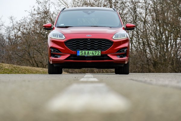 És persze sima aszfaltútra. Ott csodás, bár nincs meg benne a Fordoknál szokásos, zsírosan finom szilentezése a futóműnek. A Kuga keményebb a szokásos Ford-világnál, de még nem zavaróan, bár nagy kerekeivel nem szereti a magyar kátyúkat, csatornafedeleket, ezeken már nagyot üt. A legmeglepőbb a kormányzása, amihez fogható nincs a kompakt SUV-ok között, annyira élénk. Kicsit érezni, hogy villanyszervós, de aki ezt szereti, és nem hányósak a gyerekei, jókat fog kanyarogni vele a hegyekben. Az biztos nem véletlen, hogy a sávközép-tartó az indexkarról lekapcsolható, mert iszonyat idegesítően nyúlkál bele folyamatosan a kormányzásba, tök fölöslegesen.