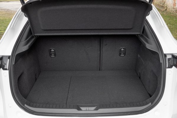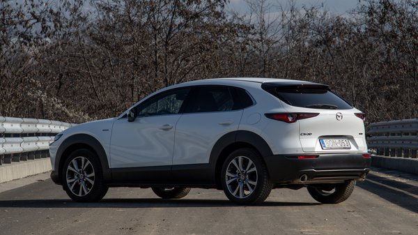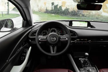 E növekménynek áldozatul esett a 3 egész estét betöltő feneke, helyette egyszerűbb, klasszikus ötajtós alakot kapott a CX-30. Ez persze nem hátrány, hiszen valamivel nagyobb oldalablakon nézhetnek ki a hátsó utasok, és a csomagtér is megnőtt, ám régen azt szoktuk meg, hogy a magasabb építésű kocsikat rosszabb vezetni. A CX-30 ráadásul ugyanazokat a motorokat, váltókat és futóműveket használja, mint a 3-as. De az utóbbi években már többször bebizonyosodott, hogy az Álmoskönyvet kidobhatjuk, mert már tudják a mérnökök, hogyan kell utána menni a magasabb súlypontnak. És úgy tűnik, a CX-30 sem kivétel.
