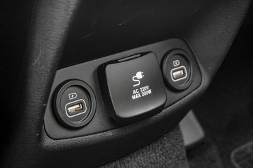 A bútorzat legmeghatározóbb eleme a magasra húzott, széles középkonzol, amit eddig leginkább prémiumautókban láttunk. Amit viszont prémiumautókban egyre kevésbé látunk, az a mérhetetlen mennyiségű gomb, tényleg csak azt bízták a középső kijelzőre, ami odavaló. Utóbbin mellesleg egy Android-gyökerű rendszer fut (legalábbis egyes gombok alapján ítélve), egész szépen, rendkívül igényes grafikával. Kikapcsolt állapotban csak az időt mutatja, és nagyon halványan átsejlik rajta a térkép és a pozíciónk, igazán ízléses megoldás. Szintén kedves, hogy hideg időben már bekapcsolt ülés- és kormányfűtés vár.