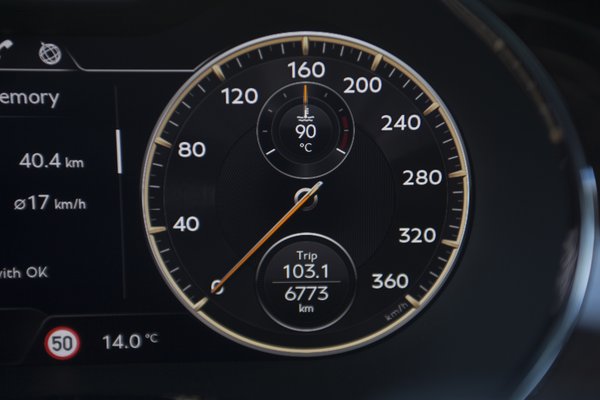 A zajokon kívül sem akad semmi, ami a városi cirkálást vagy az utazások nyugalmát megzavarhatná. Az üzemmódkapcsoló Bentley elnevezésű alapállásában, vagy Comfort beállításban a ZF gyártmányú és szintén Porsche eredetű nyolcfokozatú duplakuplungos váltó egy macska lépteinek puhaságával kapcsolgat a fokozatok között, a háromkamrás légrugókra és adaptív lengéscsillapítókra támaszkodó, elöl-hátul dupla keresztlengőkaros felfüggesztések a Mulliner csomaghoz járó (13 595 euró) 21-es kerekek ellenére nagy magabiztossággal nyelik el az úthibák pofonjait.