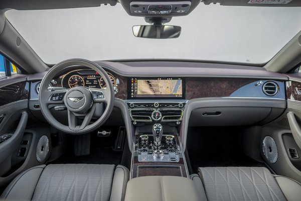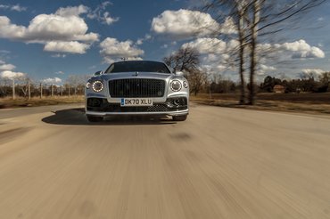 Természetesen a futómű is bekeményít, és együttműködve az összkerékhajtással, a nagy sebességnél a hátsó kerekeket az elsőkkel azonos irányba fordító összkerék-kormányzással, és nem utolsósorban az elöl 265/40 ZR 21-es, hátul 305/35 ZR 21-es gumikkal, félelmetes biztonsággal veszi a kanyarokat. Ahogy a gyorsulás olyan, amire a hazai autós közönség többsége nincs felkészülve, úgy a kanyarsebesség is egészen megdöbbentő. Aminél talán csak az a természetesség, magától értetődőség a még meglepőbb, ahogy az egészet a Flying Spur előadja. A méreteit ugyan nem tagadhatja le, de a súlyát igen. Az egészen szűk kanyarokat leszámítva, érzésre körülbelül olyan vezetni, mintha egy Audi RS5 vagy BMW M4 kaliberű autót. Ehhez persze hozzájárul a jól érezhető kormányzás és a nagyon finoman, egyenletesen adagolható, elöl 420 mm-es, oldalanként tízdugattyús, hátul 380 mm-es, oldalanként négydugattyús fékrendszer is.