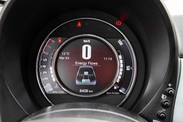 Persze nem is túraautónak szánták az 500-ast a Fiatnál, hanem városi cikázónak, aminek remekül beválik. A nagyobb gázadásra mérgesen morgó háromhengeres nyomatéka és teljesítménye lakott területen belül elegendő, ráadásul örülhetünk az indítómotor-generátor közreműködésének, amit sokkal inkább a műszeregység ábráján érhetünk tetten, mint az autó mozgásán. A diagramon látszik, ahogy lassításkor az indítómotor-generátor áramot termel és küld a vezetőülés alatti 12 voltos, 11 amperórás akkumulátorba. Ugyanígy figyelemmel követhető, ám annál kevésbé érezhető, amikor fordul a kocka, és az indítómotor-generátor a körülbelül motorkerékpár akku méretű áramtároló áramát felhasználva, motorüzemre kapcsolva segíti az 500-as gyorsítását.