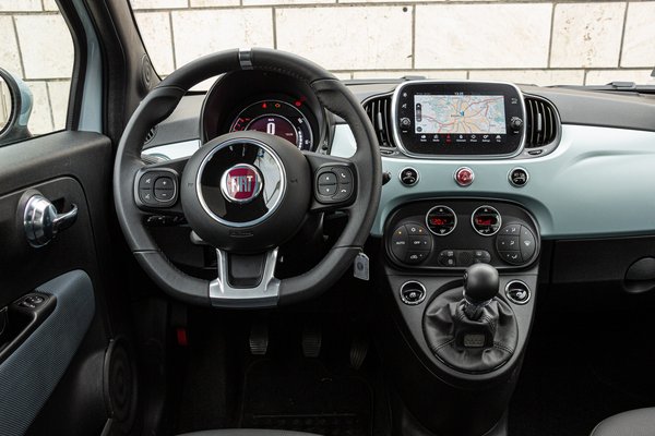 Ezzel egyidejűleg néhány apróbb belső változtatás is történt. A leglátványosabb ezek közül, hogy az analóg műszeregységet kijelző váltotta fel, és a központi érintőképernyőt is újra cserélték, amelynek a menürendszerében könnyű eligazodni, és immár korszerűbb szolgáltatásokat is nyújt (Apple CarPlay, AndroidAuto, MirrorLink). Ezen kívül egyébként ahogy kívül, úgy belül sem újult meg forradalmi módon a kis 500-as. Maradtak belül az olcsó műanyagok, az eleve magas vezetői üléshelyzet, amin a második felszereltségi szinttől kezdve (Connect) még emelhetünk, de sajnos ez sem segít sokat azon, hogy az 500-asból korlátozott a kilátás. A kormányt csak fel-le lehet állítani, ami egyeseknek megnehezítheti, hogy egészen magukhoz igazítsák az autót. Ami jó, hogy az ülés kezelőelemeit nem az ülés ajtó felőli oldalán helyezték el, ahol az oldalvédelem miatt nem lehetne hozzájuk férni, hanem középen.