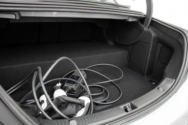 Nincs ez másképp a táskákkal és a bevásárlással, vagyis a sima csomagokkal sem, mert a hátsó tengely fölé ültetett akkumulátor miatt 370 literesre zsugorodott (170 liternyivel lett kevesebb) a pakolható tér. Ráadásul a rendszerezést megnehezíti, hogy akkora nagyszínpad keletkezett benne, simán kiadná rajta egy szellősebb Parov Stelar koncert.