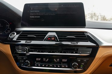 A Luxury line további folyománya a csak 18-as kerék, pufi gumikkal, vagyis az 5-ös tényleg úgy siklik, mintha úszna, ez a menetkomfort egy generációval ezelőtt még csak a 7-eshez járt. És a 350 ezres felárú komfortüléseké az érdem legnagyobb része. Egy Mecsekben letolt, 40 kilométeres, 1200 méter szintet betakaró enduróbringázás után azért éreztem a csontjaimat, mégsem fájt még három órát ülni az 5-ösben mindenféle zergehágta utakon, és ez nem kis dolog. Kényelmesen fújt a szellőztetés, ringatott az adaptív futómű, a motor meg hol ment, hol nem, azért meg lehet szokni. Mentálhigiénés szempontból előnyös, hogy a beltérnek van színe, és főleg az olyan apróságokban ütközik ki, mint hogy a fekete műszerfalat az ülésekre rímelő színű cérnával varrták meg.