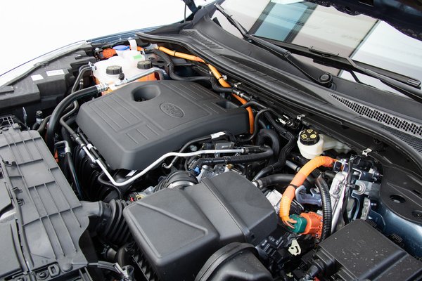 Ott van rögtön a váz (C2-es platformja a Focusszal közös), ami attól tud könnyű lenni, hogy drága, nagy szilárdságú acélból készül. Így aztán még a sok cellával megpakolt plug-in hibrid változat is megáll 1,9 tonna alatt. Ez a sima hibrid - amit nem kell oszlopról vagy konnektorból töltögetni - bő 1,7 tonnás. A hibrid rendszer egyébként már csak azért is nagyon ígéretes, mert Toyota licenc alapján készül, tehát ugyanazon az elven is működik. Nem pakolták bele a RAV4-est, hanem a saját 2,5 literes, Atkinson-ciklusú négyhengeresüket használják, bolygóművel (ezt szokás e-CVT-nek hívni) és 1,1 kWh-s akkumulátorral.