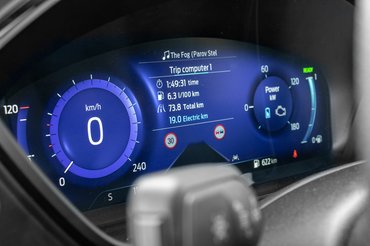 Onnantól, hogy D-be fordítjuk a kis májkrémes konzervnyi tekerőkapcsolót, amit váltó helyett kapunk, tényleg nincs sok tennivaló. Illetve mégis: az indexkar végén egy pöccintéssel kikapcsolni a szigorú sávtartót. Nagyon szoknom kellett a Kuga fékjeit, amik egészen kis pedálnyomásra is váratlanul nagyot haraptak, ezért nem volt könnyű finoman közlekedni és hozzászokni sem igazán sikerült. Felfüggesztése elöl MacPherson, hátul igényes módon független, és a merészen direkt kormányzással együtt azért mélyen benne van az a fordosan lelkes vezethetőség, ami miatt még a legegyszerűbb Fiestával is jó menni. Mégis lemondanék a sportosabb ST-Line csomagról és a 19 colos felnikről is, mert ezzel a kombinációval már keresztbordákon, felhullámzott aszfalton ütöget, máshol simán csak ráz a futómű. Hibrid SUV-ben ezt annyira nem kívánom, hiába néz ki hunyorogva úgy, mintha a Macan-imitátor verseny vigaszdíjasa volna.