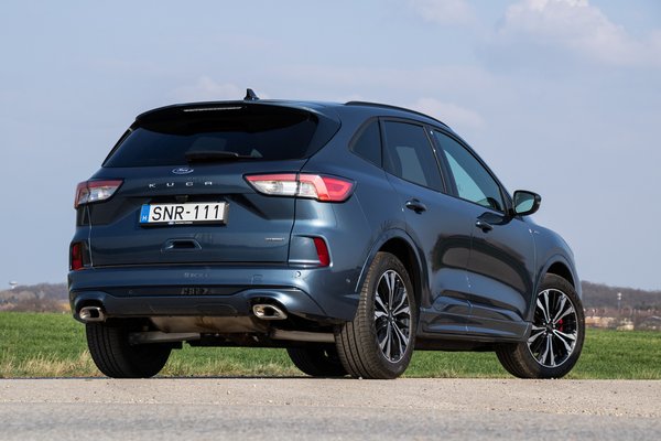 Mint a legtöbb hibriddel, a Kugával is városban lehet igazán nyugisan autózni. Ilyenkor egész sokat használja a villanyos hajtást és, ha olykor be is indítja a benzinmotort, azt nem igazán hallani belül. Kifelé viszont fertelmes hang szól a krómozott dupla kidörgőkből. Az indulás egy indokolatlanul fémes zaj, leállításkor pedig mintha simán csak méltatlanul lefulladna. Cserébe a fogyasztása egész baráti, semmi önmegtartóztatást nem kíván a 6 l/100 km alatti átlag, és közben az egész Kuga olyan, mintha ott sem volna.
