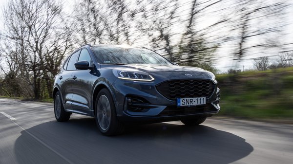 Amikor a remek hathengeres Z3-ashoz autópályáztunk Bolla Gyurival a Bakonyig, akkor mi épp a komfortzónánk felé tartottunk, a Kuga pedig hagyta maga mögött minden kilométerrel. Ha tempóból kell gyorsulást produkálni, akkor felbőg a 190 ló, a táj pedig nem iramodik meg az ablak mögött, csak nyúlósan növekszik a sebesség. Fogyasztása így már 7-8 liter közötti, ami nem rossz, de nyilván a mild-hybrid 2,0 literes dízel kellemesebb és takarékosabb, ha autópályáról van szó. 130 km/óra körülig halkan susog körülötte a szél, szóval azért lehet vele nyaralni menni.