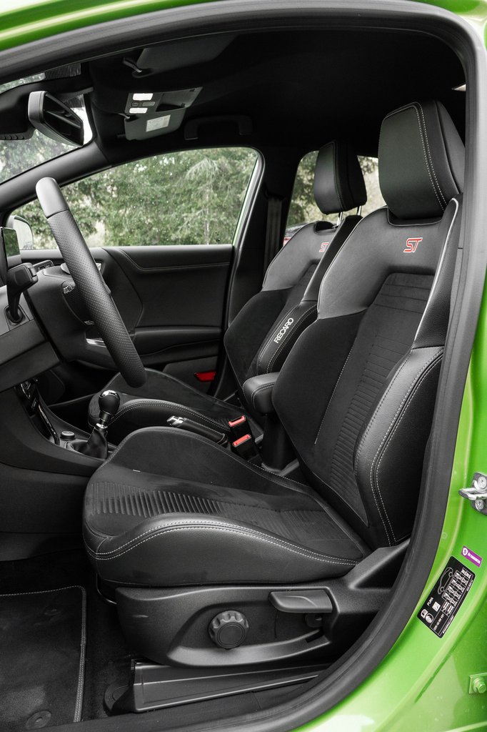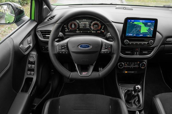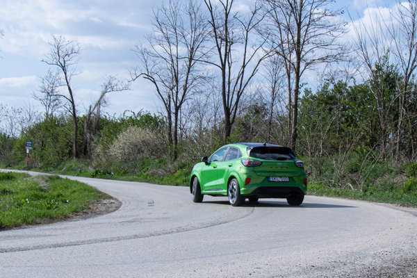 A normál Puma szívet melengetően bohókás jószág, pont annyi játékosság szorult belé, hogy aki akarja, jól érezze magát – mindenki másnak pedig egy kényelmes és ügyes crossover. Az ST viszont már beszálláskor jelzi, hogy itt eltekerték a potmétert a vadulás felé, a sportülés ugyanis annyira hangsúlyos, hogy már szinte versenyautós élmény nagy nehezen becuppanni. Aki nem tökéletesen vékony, annak folyamatos nyomásként jelentkezik a párnázott, de erőteljes oldaltartás. Ez azonban bizonyíték, nem ígéret, ugyanis az ST úgy tapad, olyan elképesztő kanyartempót lehet kiénekelni belőle normális útviszonyok között, hogy e támaszok nélkül a kormányba csimpaszkodva lobogna a kocsi mögött a pilóta.