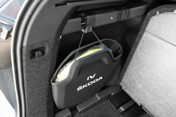 És persze tágasság, de egy bő 4,7 méter hosszú kocsinál ez a minimum. Bár míg egy hagyományos kocsinál egyetlen lemez a padló, az Enyaq alatt még van egy félemelet, telepakolva akkuval. Az alapmotor, mint minden VW-csoportos MEB-platformra épülő típusban, hátul van, csak az összkerekes verzió kap előre is egyet. A farmotornak megvan az a hatása, hogy a csomagtartó padlója elég magas, és én sehogy sem látom az 585 liternyi csomagtartót az Enyaq-ban, de azért nem pici. Az alatta lévő rekeszben elfér akár két töltőkábel is, bár a mi bemutatóautóinban volt egy klassz dizájnertok is hozzá, ami oldalt felakasztható: ez az eddig látott legjobb tárolási mód a kábelnek.
