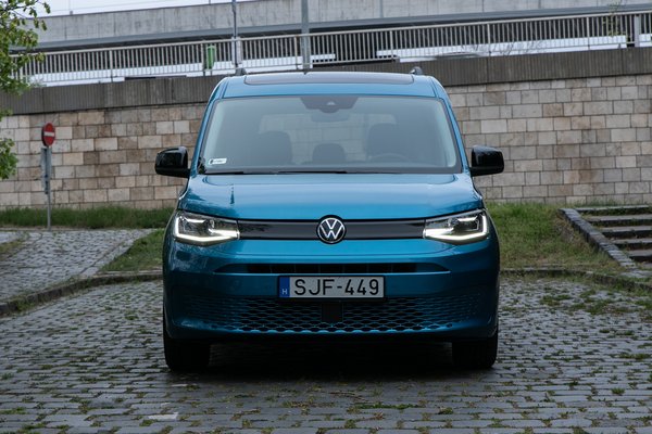 A Costa Asul kék metál ott lavíroz a harsányság határán, de még épp nem bántó, így inkább megfogja a tekintetet, sem mint taszítja. Ezt nem én mondom, hanem azok a járókelők, akiknek egy része olyan párás nagy szemekkel bámult az autóra, mintha legalábbis olasz kéz, egy Bertone vagy valami Giugiaro rajzolta volna. Azért csodálkozok ennyire, mert Caddy-ket nem szokás megbámulni, de meg kell hagyni, harmonikusra, és egy dobozos emberfurgonhoz mérten csinosra sikerült.