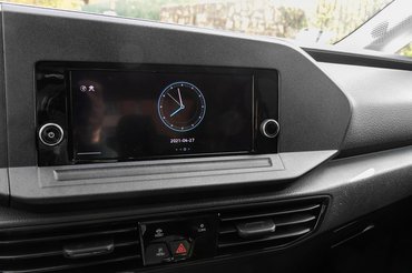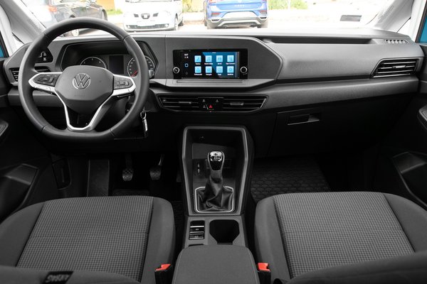 Alapvetően kellemes és abszolút kortárs volna a Caddy beltere, ha nem nyomna agyon minden formát a hiperkonzervatív színválasztás: sötétszürke műanyag a műszerfal, fényes fekete műanyag a szellőzőrács és a kijelző karimája, lapaj nagy, fekete műanyag az ajtó borítása. Ennyi lehangoló felületet még a gyémántosra textúrázott felületekkel és az övvonaltól felfelé világos borítással sem lehet elcsalni, és még azt sem tudom mondani, hogy bármi előnye lenne: a felhányt bébipép feketén, fehéren egyaránt ronda, és ne kételkedjünk a gyermeki tehetségben, felhánynak ők a plafonra is, ha kell. Az egyetlen részlet, ami bemelegít a látványba, az a négyzetméternyi üvegtetőn át befolyó fény, nélküle magánzárka lenne a Caddy, így viszont csak óvodás tömlöc.
