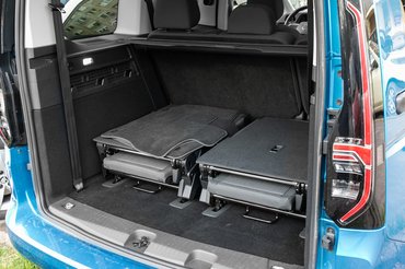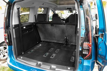 De ha már az utasok és a hozzájuk tartozó funkciók: jóanyám nem tudta nyitott állapotából kitépni a tolóajtót, de ezt a szorulást tudjuk be a tesztautó alig használt mivoltjának, és annak, hogy több ezer nyitás után is muszáj lesz majd tátva maradnia. Az ajtónyitás további stádiumai szerencsére már könnyen mennek, sőt, az utolsó centiken már villanymotorok húzzák be őket. Ezzel együtt szinte prémium termék a Caddy, de a szkeptikusabbja szerint ezek csak fölösleges marhaságok - "hatvan éven át minden ajtót be tudtunk csukni kézzel, ezek csak arra valók, hogy elromoljanak." Hét üléses felállásban nyilván még egy Ford KA is kiröhögi a csomagteret, de öt embernek, hátsó üléssor nélkül még sok is a hely, lazán kapcsolódó megjegyzés, hogy oldalra nyíló csomagtér-ajtó hangyányival praktikusabb lenne.