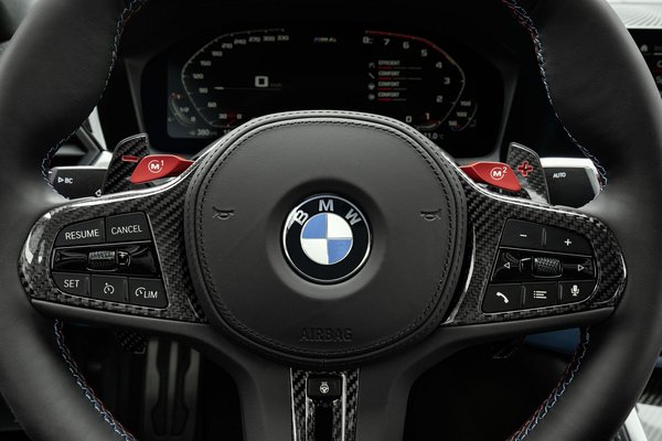Mivel a kormányt meg az elektromos szervo tudná helyettünk mozgatni, így kis átalakítással a hátsó ülésről is vezethetnék. Vagy otthonról, képernyő elől, internetkapcsolaton át – minden eddiginél közelebb került a vezetés élménye a szimulációhoz. Ám a testünkre ható erők azért még mindig valódiak, és meg is oszthatjuk akár egyszerre három utassal. Az M3 elsősorban azoknak szól, akik rendszeresen akarnak utasokat ijesztgetni, és a csomagtartója is annak nagyobb (480 / 440 l). Viszont akit ez nem érdekel, mert versenypályára szánja a BMW-t, az is választhat szedánt – a vezetőülésből a két karosszériaváltozat gyakorlatilag egyforma. Sokkal érdekesebb kérdés, hogy Competition, vagy sima legyen?