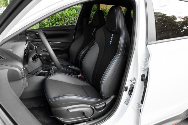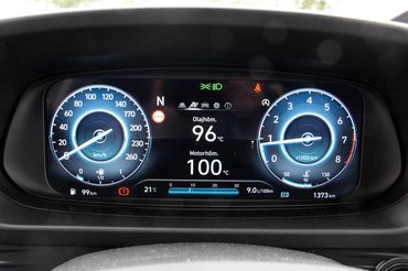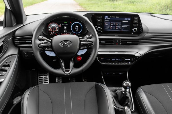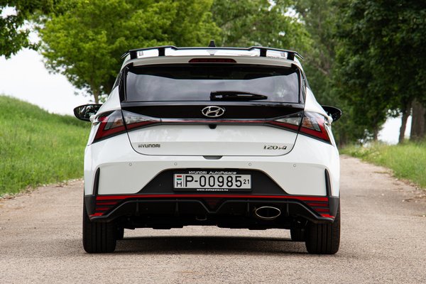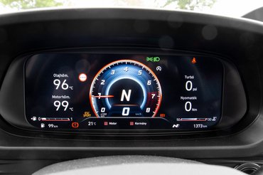 Egyéb adottságaival azonban kimondottan beválik akár családi autónak is az i20 N. Hasonlóan a polgári i20-asokhoz, utastere elég nagy négy, akár megtermett felnőtt elhelyezésére, és a csomagtartó a maga 352 literes méretével is a nagyobbak közé tartozik a kategórián belül. És még a hátsó üléstámla egyharmad-kétharmad arányú előredönthetőségével a bővítés lehetőségét is meghagyták. Ez éppúgy alaptartozék, mint az üzemmódoktól függően más-más rajzolatot mutató, 26 centis digitális műszeregység vagy a 20 centi átlójú központi érintőképernyő tolatókamerával, CarPlay és AndroidAutó csatlakozási lehetőséggel. Nem alap azonban például az automata klíma, ami vagy feláras, vagy csomagban kell megvenni, valamint a kulcs nélküli ajtónyitás és -zárás és nyomógombos motorindítás.