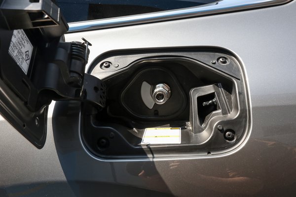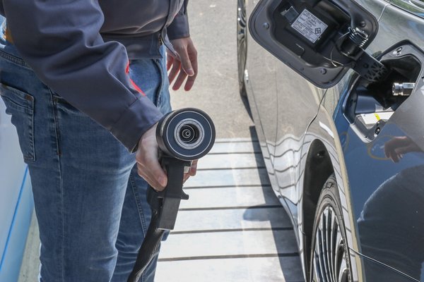 A hidrogénkút puritán téglatest, kék tapétáján H<sub>2</sub> feliratokkal, a két töltőpisztoly a kotla közepén fityeg. Az egyik 350 baros, főleg kisebb járművekhez, targoncákhoz tervezett szabvány, a másik 700 baros, azon osztozik majd a Toyota a többi üzemanyagcellás személyautóval, busszal és teherautóval, Black Friday szintű harcokra mondjuk egy darabig nem kell készülni.