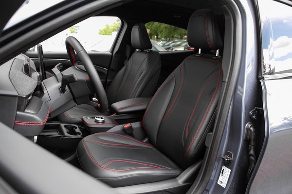 Nagyon jó. Az ülés fantasztikusan kellemes, olyan beleérkezni, mint egy memóriahabos matracba. Sok a hely, hátul inkább hosszában, de két embernek keresztben is. A kupés dizájn miatt inkább kuckó mint katedrális a beltér, térélményre. Az anyagok, a dizájn jó, a Bang & Olufsen hifi hangszóróselymei adnak egy kis extra high-tech szexet az amúgy is menő környezetnek. A hangja nem lenyűgöző, de jobb az átlagnál. A Mach-e is majdnem megkapta a Teslák tökéletes telefontartó polcát a középkonzolra, csak aztán itt már nem jutott indukciós töltő az utasnak.
