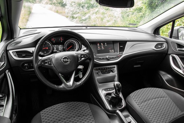 Kevés autót egyértelműbb kezelni, mint az Opel Astrát, hiszen itt minden pontosan azon a helyen van, ahol elsőre keresné az ember. Az első üléseket nem csak könnyű beállítani, hanem így 178 centivel még kényelmesek is, a kormány jó fogású, és minden funkció gombja egyben csoportosítva ül a küllőin. Váltója épp kéz alatt van, és nem sokat kell nyújtózkodni az érintőképernyőhöz sem. Gyorsan csatlakozik a Bluetooth-szal a telefonhoz, és onnantól a kihangosítás is megoldott, a klímapanel alatti mélyedésben pedig megáll a mobil.