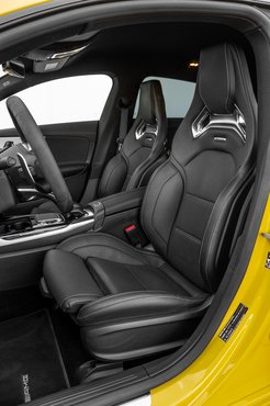 A futómű átépítését a kaszni alapos megerősítésével kezdték, majd persze ültetett sportrugók, erősített szilentek és sportos lengéscsillapítók kerültek bele, utóbbiak felárért állíthatók is, ahogy a tesztautóban. A merev kasztni azért jó, mert nem kell annyira sprőd futómű, hogy jó legyen a mozgása, így hiába elvetemült sportváltozat, ez az AMG 45 S meglepő módon még rugózni is képes. Ami egyrészt azért jó, mert amikor csak úgy kajtatunk vele ügyes-bajos dolgunk után, akkor nem rázza ki a lelkünk. Szinte már vicces, hogy hiába a kemény kagylóülés, alapvetően kényelmes a kocsi, normál állásban még csak nem is igazán hangos. De igazából azért jó az engedékeny futómű, amiért a raliautók is rugóznak: rossz úton sem kell lassítani, megmarad a tapadás, megmarad az úttartás. Márpedig ezek kiütik a skálát!