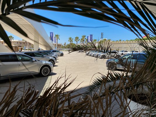 Bizarr, cinikus reménytelenség ül a vállamon, ahogy a Covid-szabályokat daráló spanyol hangosbemondót hallgatva, szégyenmaszkos latrokként vonulunk a nyitott oldalú valenciai parkolóházba, amelynek egy lekerített sarkán (hogy szabad levegőn is legyünk, meg ne is) várnak minket az Ioniq 5-ök.