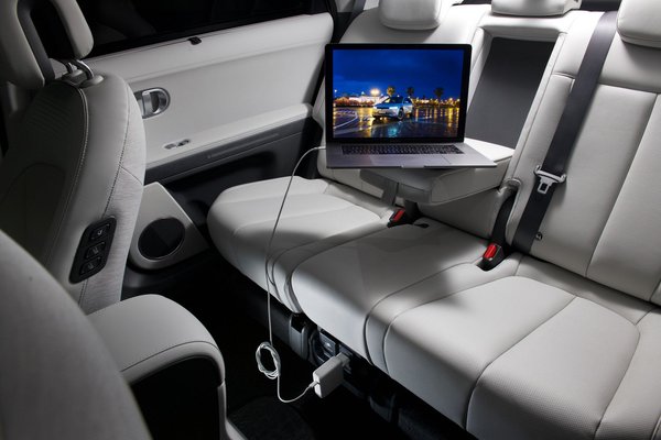 Egyelőre ritkaság, hogy az Ioniq bőszen ad áramot kifelé is. Van benne rendes dugalj, és 3,6 kW ki is fér belőle, szóval ütvefúrhatunk teafőzés közben, amikor csak kedvünk tartja. Ha nem adjuk, hanem vesszük a 220-at (230-at), akkor 11 kW-tal tud tölteni váltóáramról.