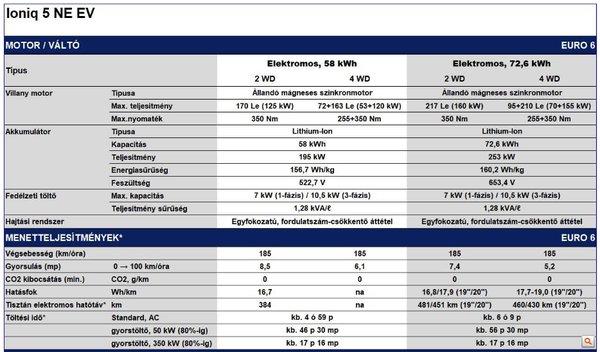 Felhasználói oldalról az Ioniq tökéletes. Erős, néma, veszettül gyorsan tölt. A rendszerfeszültség 800V a szokásos 400 helyett, ami magában nem garancia semmire, de vannak bizonyos előnyei. Az egyik az volna, hogy a nagyobb feszültség miatt azonos teljesítményhez alacsonyabb áramerősség kell, ami kisebb ohmikus (ellenállásból származó) veszteséget jelent. Vagyis elméletben az ilyen autók valamivel hatékonyabban működhetnének, kisebb fogyasztással, de egyelőre a gyakorlat ezt nem látszik visszaigazolni. A mai piac autói közül a Porsche Taycan és tesói 800V-osak, és egyik sem kimondottan takarékos. Az is igaz, hogy a Taycan eleve nem arra van optimalizálva, ahogy a jelek szerint az Ioniq 5 sem. Hatalmas felniken Michelin Pilot Sport 4S gumik voltak a tesztautóinkon, ami a műfaj egyik csúcsa, ha tapadni kell - de nem spórolni van, hanem ragadni.
