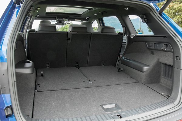 Rengeteg hely van benne, pedig a vaskos sportülések azért rendesen rárabolnak a centikre, még így is nagyon terpeszkedős a hátsó pad, aminek állítható a támlaszöge és tologatható ide-oda. Már csak azért is, mert innen kell beszállni a harmadik sor két ülésére, amik nyilván szűkek és kényelmetlenek egy rendes utazáshoz, felnőtt méretekhez meg pláne. Ellenben gyerekcsapatot szállítani a legközelebbi délutáni foglalkozásra éppen megteszi. Addig talán nem veszik észre, hogy a térdük belelóg a fülükbe. Csomagtere ötüléses módban bő 800 liter, lehajtott ülésekkel több mint 2 köbméter, szóval nem kell bepakolni a szatyrokat, csak rámpán beletolni a bevásárlókocsit.