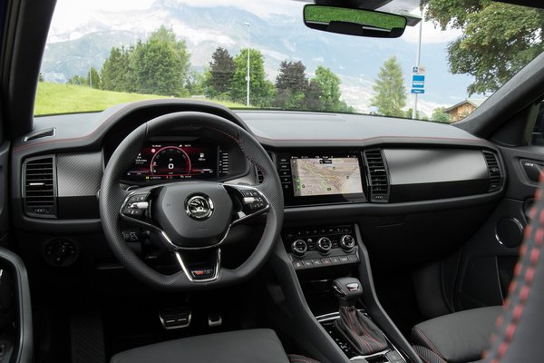 245 lóerős turbós benzinmotor, összkerék és ordítanak a felnik mögött a piros féknyergek, benne masszív fogású kormány, oldalról határozottan támasztó ülések. Ha innen nézzük, nem hangzik úgy, mint egy 1,9 tonnás Skoda szabadidő-autó. Pedig bárhonnan nézem, a Kodiaq RS határozottan az.