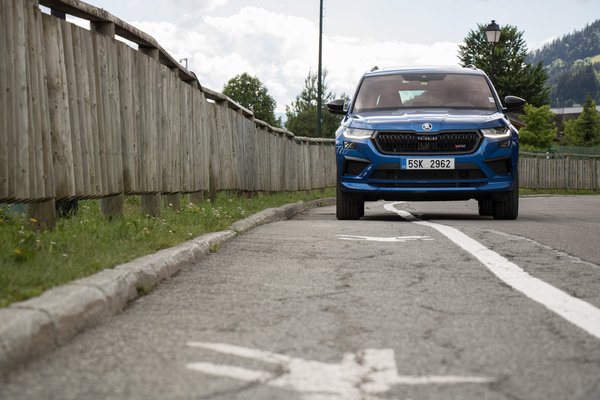 Nulláztam a fogyasztásmérőt, amikor átvettem az autót a genfi reptéren, majd megszámlálhatatlan kereszteződéssel később 17 litert mutatott a városi araszolásban. Ahogy másztunk fel a Mont Blanc holdudvarában elszórt szerpentineken, úgy voltam benne egyre biztosabb, hogy az autópályás csendes tempózásban messze több hatékonyság (7-8 literes fogyasztás) és harmónia van. A Kodiaq RS adaptív lengéscsillapítói normál módban is rázósak, a szűk kanyargós úton pedig rendesen érezni lehetett, hogy pofozzák az úthibák a nagy és nehéz felniket az autó alatt. Mögöttük ráadásul hiába piroslanak a fékek, csak úszónyergesek, egydugattyúsak és a hegyi fickándozásban könnyen fáradnak. Elöl MacPherson, hátul független, négylengőkaros felfüggesztése van és ehhez picit érzéketlen, de pontos kormányzása.