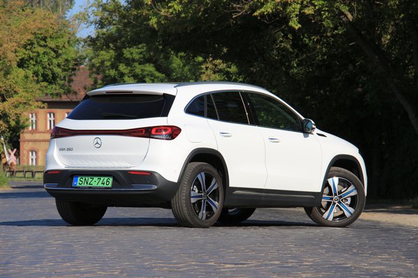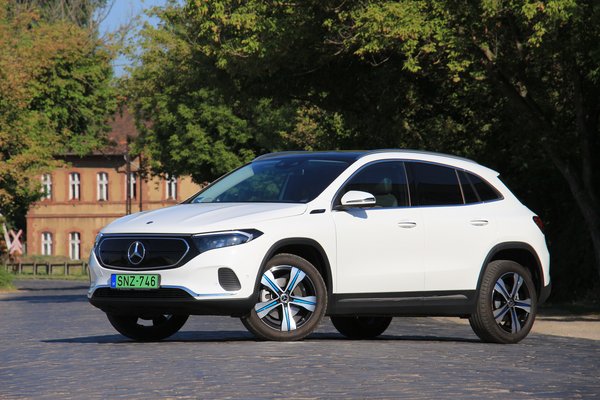 Nem versenyautó tehát az EQA, de egyéb szempontból sem az. Csupán futóműve feszessége alapján vélhetnénk azt, hogy akadnak ilyen ambíciói, ugyanis a 235/50 R 19-es gumikon gördülve még olyan kátyúk is jelezték létüket az ismert útvonalakon, amelyeken a legtöbb autó simán átsiklik. Ennek ellenére kanyarban megdől a karosszéria, az orrát is tolja a külső ív felé az EQA, így igazán nem csábít arra, hogy új rekordra törjünk vele bármely szerpentinen. Makulátlan burkolatú úton és autópályán ellenben kimondottan kellemes útitárs, aminek normális használatban még a hatótáv-kijelzőjét sem kell állandóan nézegetni.