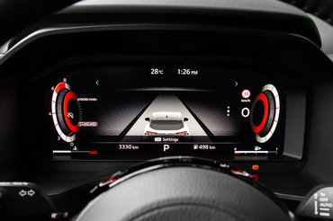 Nem az viszont a központi érintőképernyő, amely a második szinten jelenik meg 20 centis átlóval, és eggyel feljebb vált 22 és fél centisre. Nem az a kormány mögötti, 31 centis, digitális műszeregység, amely rengeteg információt és beállítást képes megjeleníteni, ráadásul a kezelése is nagyon egyszerű. (Alapból csak 18 centis jár.) Szintén nem alaptartozék, de a kategórián belül már önmagában az is érdem, hogy ilyet kínál valaki, a 27 és fél centis, színes, szélvédőre vetített head-up-display, amely éles képpel jeleníti meg a legfontosabb adatok mellett a navigáció jelzéseit is. És immár akár a szóból is ért a Qashqai, igaz, a hangvezérlés egyelőre csak az öt legnagyobb európai nyelven érhető el.