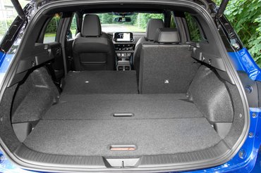 Azért ez a méret már jól használható, úgy meg különösen, hogy megtartották benne a kettéosztott, és több szintben rögzíthető padlót. Leeresztve alapból nagyobb a csomagtér, felemelve sík padlót kapunk a hátsó támlák előredöntése után, míg az egyik darabot függőlegesen is rögzíthetjük, amivel a kisebb csomagok helyváltoztatási hajlama csökkenthető, ha nagyon belelendülnénk a vezetésbe.