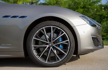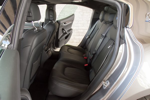 Az ember azt hinné, hogy ez a Maserati 3-as BMW-je. Némileg megkönnyíti ennek a téveszmének a kialakulását, hogy az arányai tényleg olyanok. Viszont a valóságban egy 5-ös BMW-nél is nagyobb, nyolc centivel hosszabb, és ugyanennyivel (!) szélesebb. Tényleg döbbenetesen nagy tepsi, a garázsunkban egy Volvo V90 passzosan befért, ez meg úgy, hogy inkább nem csuktam rá le az ajtót. A gyakorlatban annyit jelent, hogy egy ötméteres garázsban bő egy-egy cenit maradna elöl-hátul, miközben az autó olyan széles, mint egy SUV. Amúgy egyébként csak kívül eszement terjedelmes, de a hátsó lábtér biztos nem nagyobb, mint egy 5-ös BMW-ben vagy egy E Mercedesben.