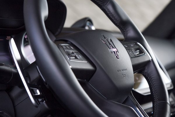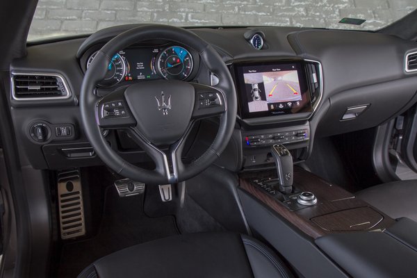 A startgombot perverz módon a kormánytól balra helyezték el, mert ez előnyösebb a Le Mans-i rajthoz az ékszerpláza parkolójában Glamour-napok idején; még váltófülek is vannak a kormány mögött, természetesen fémből (felárért), és ahogy elnézem, a Ghibliben ami fémnek látszik, az fém is. A váltó karocskáján szintén ott a Maserati-szigony, amit egyébként a modenai főtéren álló Neptunusz szoborról vettek kölcsön a Maserati-fivérek a hőskorban. A sajtóanyag szerint amúgy a faceliftes maszk is erre próbál hasonlítani, de sehogy sem ismerem fel benne ezt a szerszámot. Bár a hátsó lámpa fénycsíkjában sem látom a bumerángot, viszont az íve tényleg hasonlít a 3200 GT kupé hátsó lámpájára. A Ghibli amúgy a legmodernebb ledmátrix lámpát kapta előre, de azért beleférhetett volna, hogy a rendszámot is ledek világítsák.