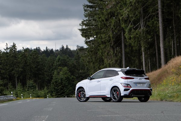 Ez ellen azonban lehet tenni, hiszen ott az egyéni beállítás lehetősége, vissza lehet puhítani a lengéscsillapítást, miközben minden más sportos marad. Ez annyira bejött, hogy szinte egész nap így hagytam, ugyanis az emberi rugózással semmit nem veszít kanyartulajdonságaiból a Kona N. Ez egyrészt a tapadós gumik érdeme, másrészt az igényes multilink hátsó futóműé, ami gyakorlatilag minden körülmények között semlegesen követi a kocsi orrát. De talán a legfényesebb csillag az eLSD, hiszen ha nem elég szűk a kanyarív, elég gázt adni, és még szűkebbre veszi. Pont ahogy Colin McRae tanította, if in doubt, flat out.