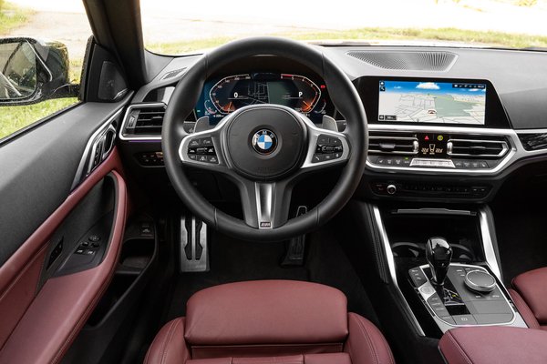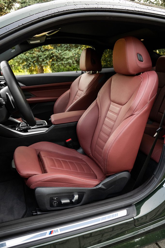 Bár M Sport csomagos a tesztautó, sportülést nem rendeltek bele, és ennek most örülök, mert abban, illetve az M4 Competition verseny kagylójában nem találtam igazán a helyem. Ez a széria nyereg viszont már majdnem tökéletes, aki nálam kevésbé háklis, az imádni fogja, oldaltartása is akad elegendő. De mondom tovább, mert a rugózás-csillapítás megfelelő kényelmet ad, rossz úton sem ráz ki a bőrömből és nem üt fel, jó úton meg csodás siklást biztosít, a vezetői komfort többi kelléke – pohár-, telefon- és palacktartók, könyöklők, kényelmes kezelhetőség – mind hibátlanok. Komplett csomag egy ilyen 4-es kupé, mindenre gondoltak, minden szempontból sok pontot ér el a jóautósági skálán.