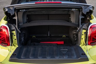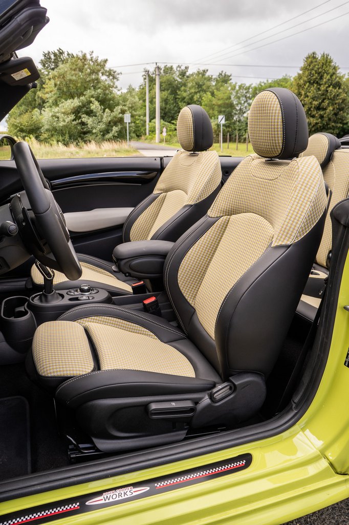 Az egyik tényező biztosan a súly: az első JCW még csak 1150 kiló volt, a mai viszont már 1350. Ez a Cabrio meg 1450 kg, azért ekkora tömeg alatt már 231 ló sem olyan virgonc. A súlytöbblet természetesen a merevítések miatt van, és kabrióhoz mérten meglepően szilárd is a nyitott Mini. Ezt onnan vettem észre, hogy a miután visszaadtam, egyből átültem egy másik rongytetősbe, ami puhábbnak érződött. De sajnos fából nem lehet vaskarikát kovácsolni, a betonkemény háromajtóshoz képest még ez a kabrió is puhább valamivel, ami szintén afelé mozdítja az egyenletet, hogy nyugodtabb, kiegyensúlyozottabb a viselkedése. Nem terrier ez így már, hanem jól nevelt agár.