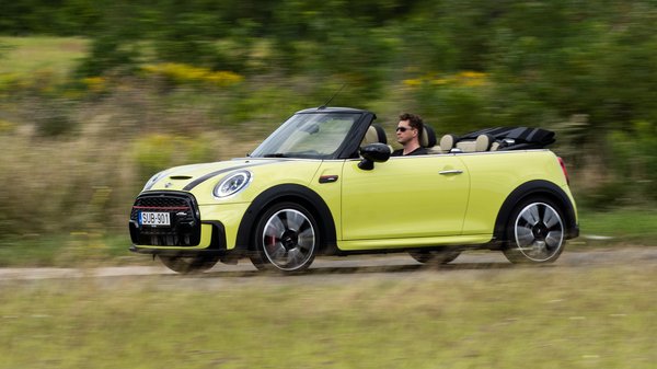 1,4 millió forint a nyitható tető felára a háromajtós Mini Cooper JCW változathoz képest, és az a benyomásom, hogy ennek minden forintja megéri. Legalábbis annak, aki nem a sportkocsit, hanem a bugit keresi a Miniben.