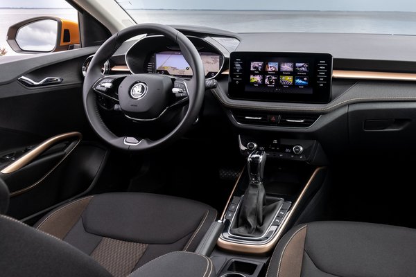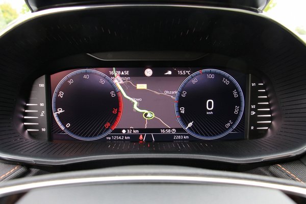 És immár a műszeregység is lehet digitális, mérete 26 centi, és meglepően sokféleképpen konfigurálható. Az egyetlen nagy sebességmérőtől kezdve a két körműszeren és több máson át egészen a teljes mezőt kitöltő navigációs térképig bezárólag. Ez feláras, a legolcsóbb kivitelek hagyományos, mutatós körműszeres műszeregységet kapnak, amihez 9 centi átlójú információs kijelző jár a műszerfal közepére. A már ismert távolságtartó tempomat, táblafelismerő, holttér figyelő és kitolatást segítő mellett olyan aktív, vagyis a kormányzást is átvevő sávtartó rendszert is kapott a Fabia, amely az úttest szélét is képes felismeri, nincs szükség feltétlenül felfestésre.
