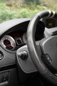 Használt autók között azonban más a helyzet, itt van például ez a Renault Clio Gordini GT. Ilyet Magyarországon újként nem árultak, tehát röviden a lényeg: a harmadik generációs Clio GT változata egy olyan RS, amit a kétszáz lóerős sportmotor helyett 128 lovas 1,6 literessel árultak. A Gordini előtag plusz izmot nem hoz (ahogy az RS-nek sem), csak egy rakás Gordini feliratot, dupla fehér gyorsítócsíkot, spéci kormánybőrözést meg fém váltógombot jelent. Hallottam olyanról, hogy a motor programozása más egy kicsit, de ha így is van, annak tíz év után már nincs jelentősége. Sokkal fontosabb, hogy az RS-sel szemben a Gordini GT-ben ugyanúgy csak 50 km/h alatt lehet kikapcsolni az ESP-t, mint a többi polgári Renault-ban.