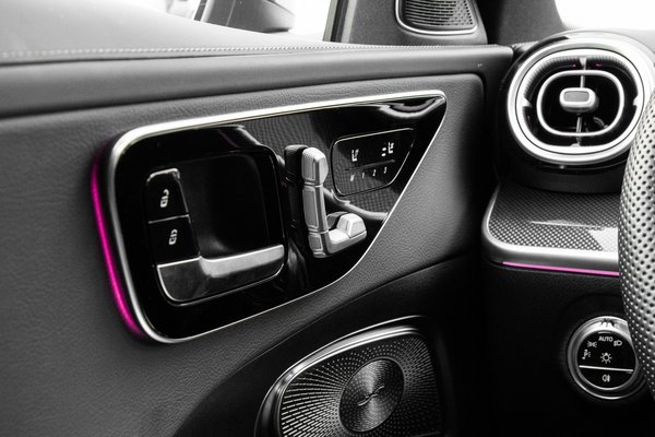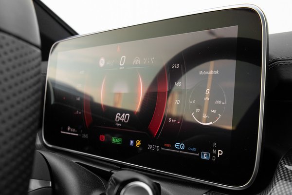 Indításkor látványos showt nyom a fényekkel a Digital Light fotonágyú, mely az S-osztályból érkezett és akár 650 méterre is elvilágít. A MultiBeam 84 darab LED-je mellett van benne egy vetítőlencse, 1,3 millió mikrotükörrel, ezzel tudja kitakargatni az előtte haladó autót és akár piktogramokat vagy zebrát vetíteni az útra. Zseniális látvány este autózva nézegetni, hogy folyatja lágy átmenetekben a lumeneket a térben.