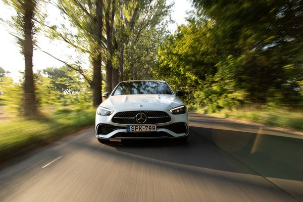 Klasszikus, hátsókerekes Mercedes a C 300-as, ami pont jó méretű, pont elég erős és pont annyira minőségi, amennyire kell. Mert van benne beszédfelismerő MBUX, mild hybrid rendszer, de ott a 258 lóerő és a pazar futómű is, hogy ne csak taperolni, hanem vezetni is jó legyen.