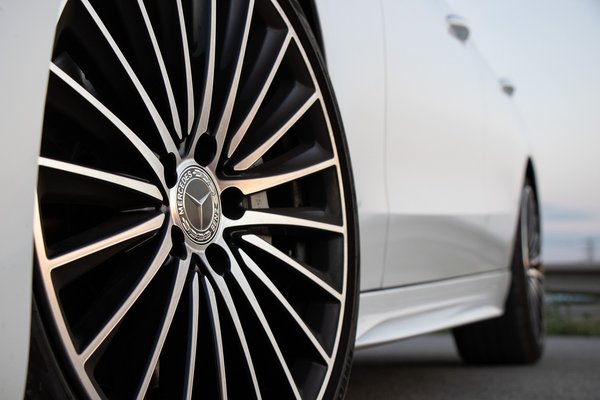 Mesésen mutat, mert pontosan olyanok az arányai, amilyennek egy hátsókerekes limuzinnak lennie kell. Cápaorra van, mint a legcsinosabb autóknak, hosszan nyújtózkodó gépházteteje, utána pedig jön a hátratolt utastér az egyetlen ívvel rajzolt ablakvonallal. A kabin tömege ráül a széles hátsó kerekekre, zárásnak meg egy kerek fenék a rövidke csomagtérfedél után. Elegánsan, két vonal feszül végig a domborodó lemezen és nem is kell neki több, hiszen ott vannak a részletek, a gyémántszerű lámpák és az AMG hűtőmaszk annyi csillaggal, mint az égen.