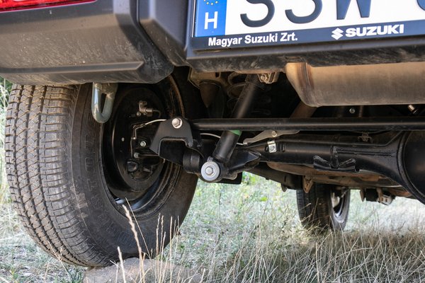 Az AllGrip Pro összkerékhajtást és a felezőt is old school módon, dedikált karral kell választani, érezni és hallani a mechanika klattyanását a lemezek alatt, a lejtmenet-vezérlő pedig egy gombnyomásnyira van. Klasszikus difizárat viszont hiába keresünk, a tapadást vesztett, adott esetben levegőben lógó kerekek fékezésével (LSD) mozogja ki a helyzetet az autó. Nem kell a babodi elitizmus - ha a Jimny fő piacainak számító Ausztráliában és Kelet-Ázsiában elég ez a rendszer, akkor higgyük el, hogy Magyarországon is az. Ez a lószgécc-hit átvisz mindenen. Aki mégis kevésnek érzi ezt a kombót, először a gyári 195/80R15-ös méretű gumikat cserélje le, úgy tippelem, azoknál egy összegöngyölt gofri is nagyobbat fog a sárban.