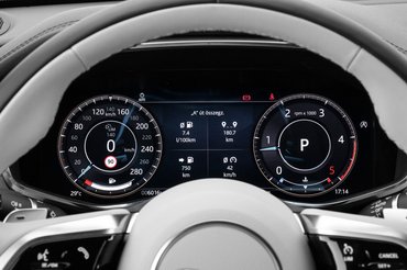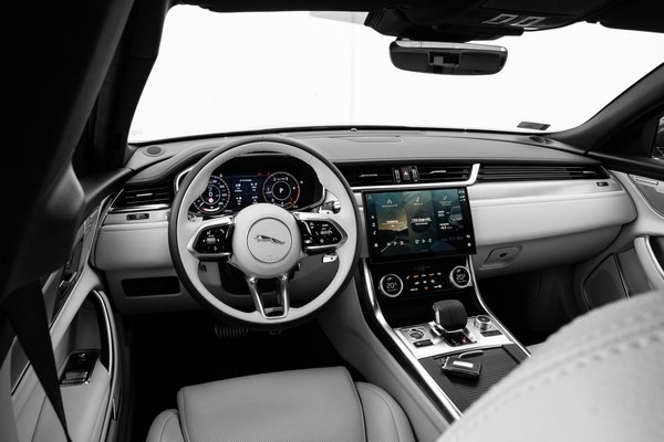 Digitális az óracsoportjának elrendezése egész szabadon konfigurálható. Én maradtam a szokványos, kétórás elrendezésnél, de lehet sportosabb, középre rendezett fordulatszámmérős és navigációt mutató is. A központi érintőképernyő hajlított kijelzője 11,4 colos és hardveresen fejlesztették a frissítéskor, hogy szebb és gyorsabb legyen. A logikája először kacifántos, a működése pedig távol áll a Tesla vagy akár az MBUX felhasználói élményétől, de a Jaguar nem is a geek-eknek szól. Klassz viszont a klímapanel, melynek tekerentyűi húzásra és nyomásra váltanak funkciót, ez a beléjük integrált kijelzőkön egyértelműen látszik.