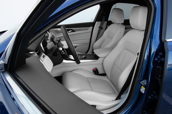 Hideg fehér és antracit bőrbe kötött belterének remek hangulata van, még az ezüst dekorbetétekkel együtt sem rideg. Ízlésesen díszített, kellemes illatú, kényelmesen tágas az egész utastér, az ajtókárpitokon és a műszerfalon végigfutó ív, a selyemfényű fém keretek és a mindenhol visszaköszönő minták mind igényes elemek, amikből árad a minőség. Semmi ropogás a tetőből, zörgés az ajtókárpit mögül, csak a masszív tömbszerűség.