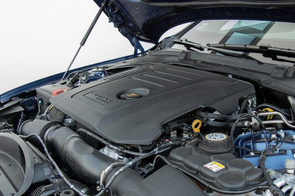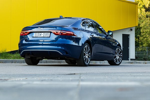 Ahogyan a trend lassan kivérezteti az arányos szedánokat és praktikus kombikat, a szigorodó normák pedig levadászták a feltöltött V6-ost, úgy fogyott el az XF körül is a levegő. Ahonnan korábban halkan vonyított a kompresszor, onnan ma már csak négyhengeres turbómotor hangja szólhat. Kis keserűség ez nekem, mert ehhez a formához (és a kombiéhoz is) nagyon illene egy selymesen duruzsoló, sokhengeres benzines vagy akár az a morajló sorhatos dízel az F-Pace-ből. Ez a 204 lóerős és 430 Nm nyomatékú dízel egész kulturált, a 48 voltos mild hibrid rendszere pedig ügyesen állítja le a motort, csak az újraindításkor rezzen kicsit. Lítiumion akksicsomagja a 450 literes csomagtér padlója alatt van, a szükségpótkerék szomszédja.