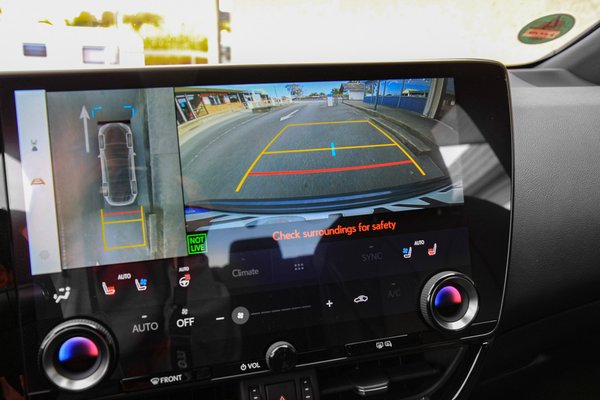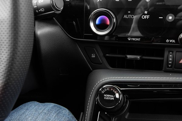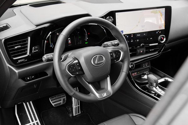 A Lexuson már sokszor számon kérték, hogy legalább a nyomógombok lehetnének egységesek. Ez a probléma gyakorlatilag megszűnt, mert szinte nincsenek is gombok, a klíma bizonyos funkciói fix érintőpanelen állítódnak, a többi egy felugró menüben. A váltókar (vagy mi) környékén van pár gomb, valamiért a vezető térdéhez rakták a parkolást segítő kamera gombját, illetve a kormánytól balra, a mélyben van még két-három gomb, de azok nem látszanak.