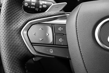 Az újító szellem már csak egy ponton nehezíti tovább az ember életét. A telefon, hangerő, léptetés és a tempomat/sebességkorlátozó gombjai eddig minden egyes autó multikormányán elfértek, sajnos az NX esetében nem. Pedig mindkét küllőn van egy lapozógomb, meg két másik, plusz egy négyirányú gomb is. Most tessenek figyelni, mert még én sem értem teljesen: ha a lapozót (alul, a széles gomb) megnyomja az ember, akkor a négyirányú gomb funkciói megváltoznak. Mondjuk a tempomat sebességnövelése helyett le-föl mozog a head up display, azaz a szélvédőre vetített kijelző magasságát szabályozza. És honnan tudod, mit nyomkodsz éppen? Hát a head-up display-ről. Vagyis menet közben ezt kell nézegetned, akkor is, ha mondjuk a rendes műszeregységen megváltoztatnád a kijelzést, mert először meg kell találnod a négyirányú gombok megfelelő funkciócsoportját, hogy ezt megtehesd. Egyszerű, nem?
